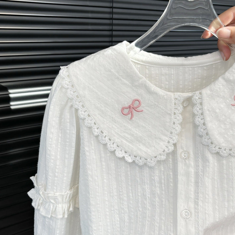 Embroidered Lace Collar Blouse
