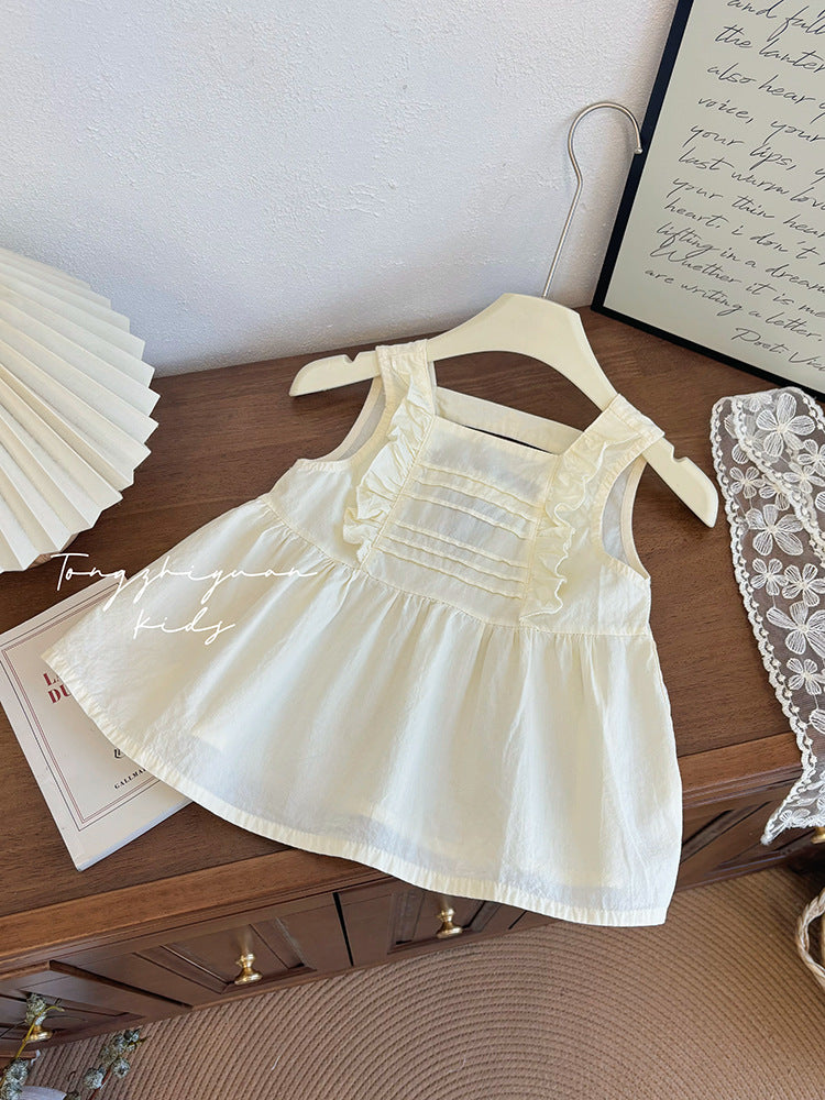 Keywords: toddler ivory top, baby girl ruffle blouse, summer toddler shirt, casual baby outfit, MerBearWear top
