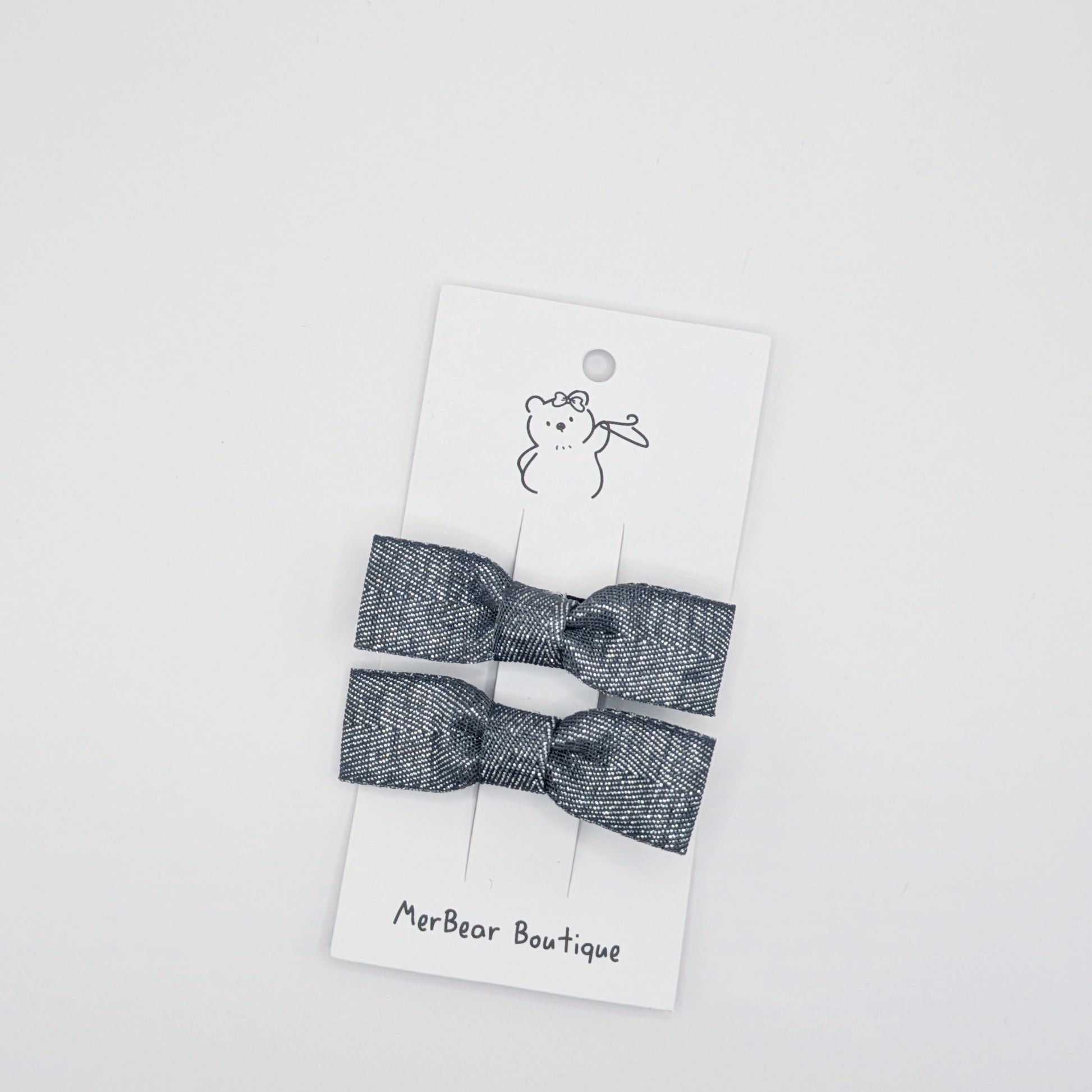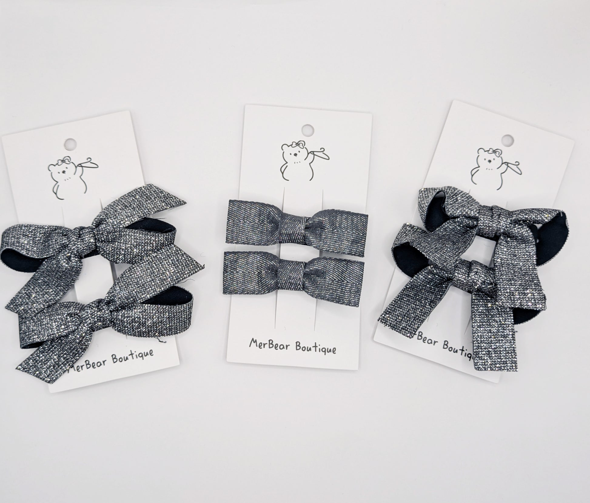 Bring a touch of shimmer and elegance to any look with our Silver Bow Clips! Featuring a soft silver tone with a subtle shine, these bows are perfect for adding a little sparkle — whether it's a birthday, a family photo session, or just a magical everyday moment. Made with lightweight, comfortable fabric and strong clips for a secure fit all day long.