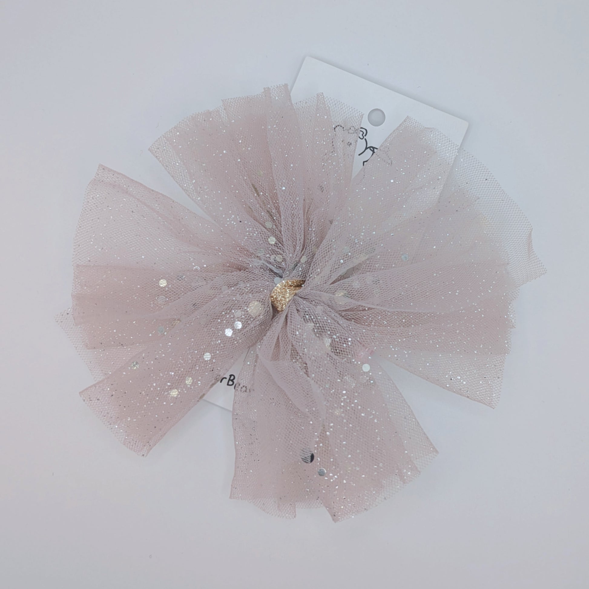 Add a magical touch to any outfit with our Sparkle Tulle Bows! Crafted from soft, airy tulle and sprinkled with shimmering glitter and sequins, these bows are perfect for special occasions, dress-up days, or adding a little everyday sparkle. Available in dreamy shades of blush pink, navy blue, and soft grey with gold accents, each bow is designed to shine and make your little one feel extra special.