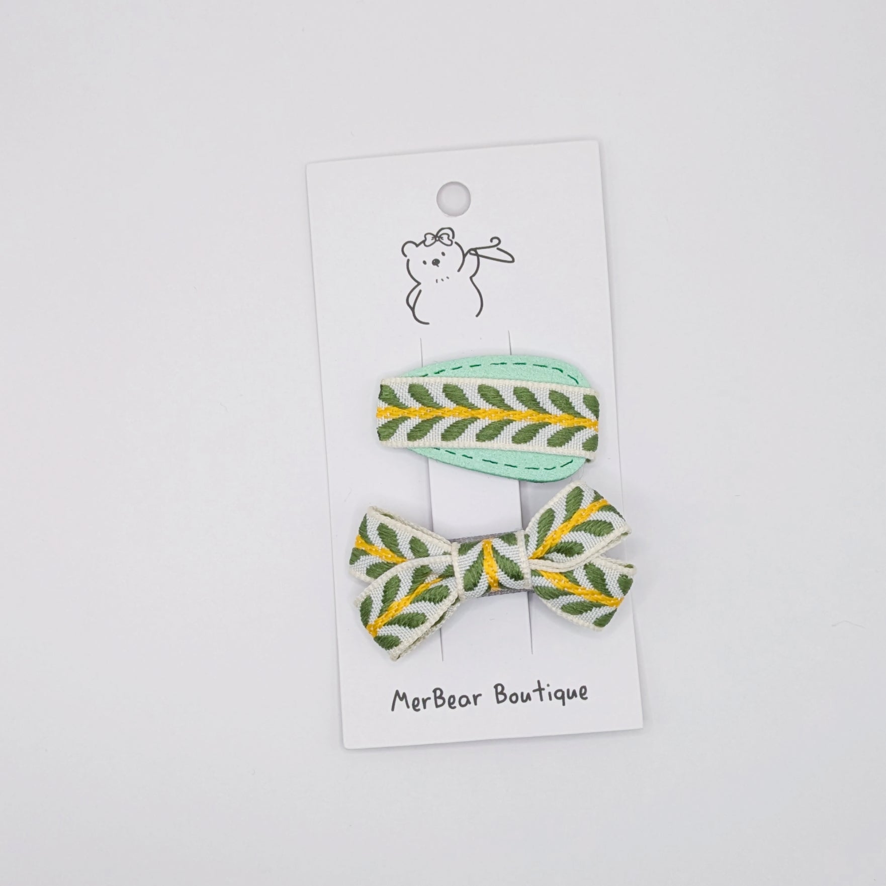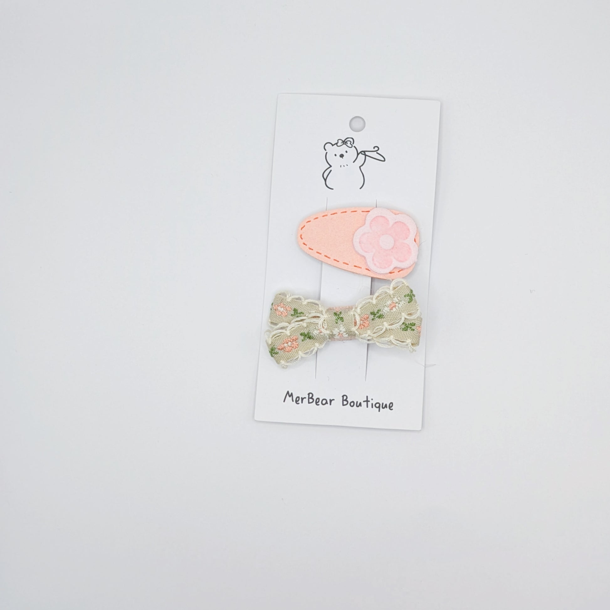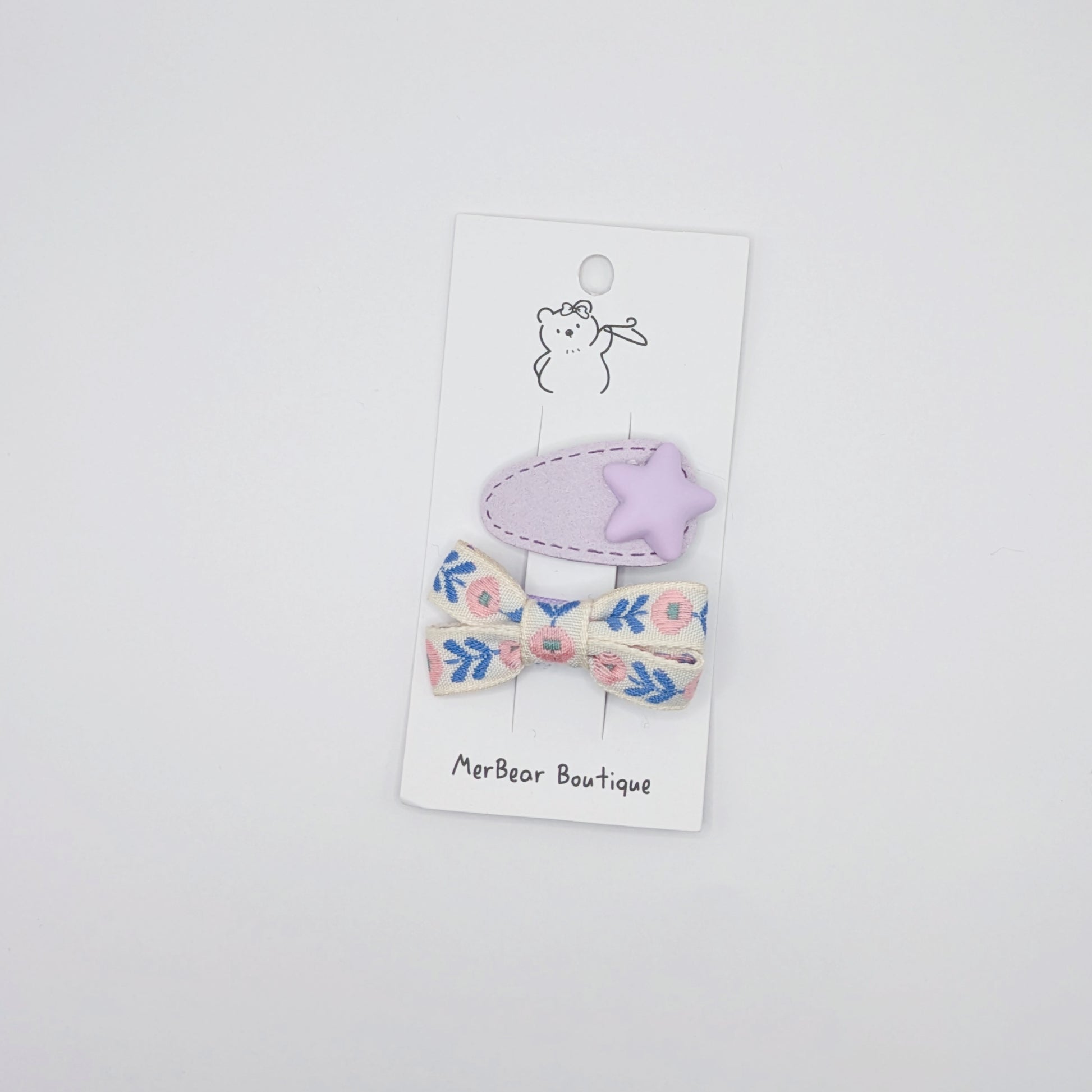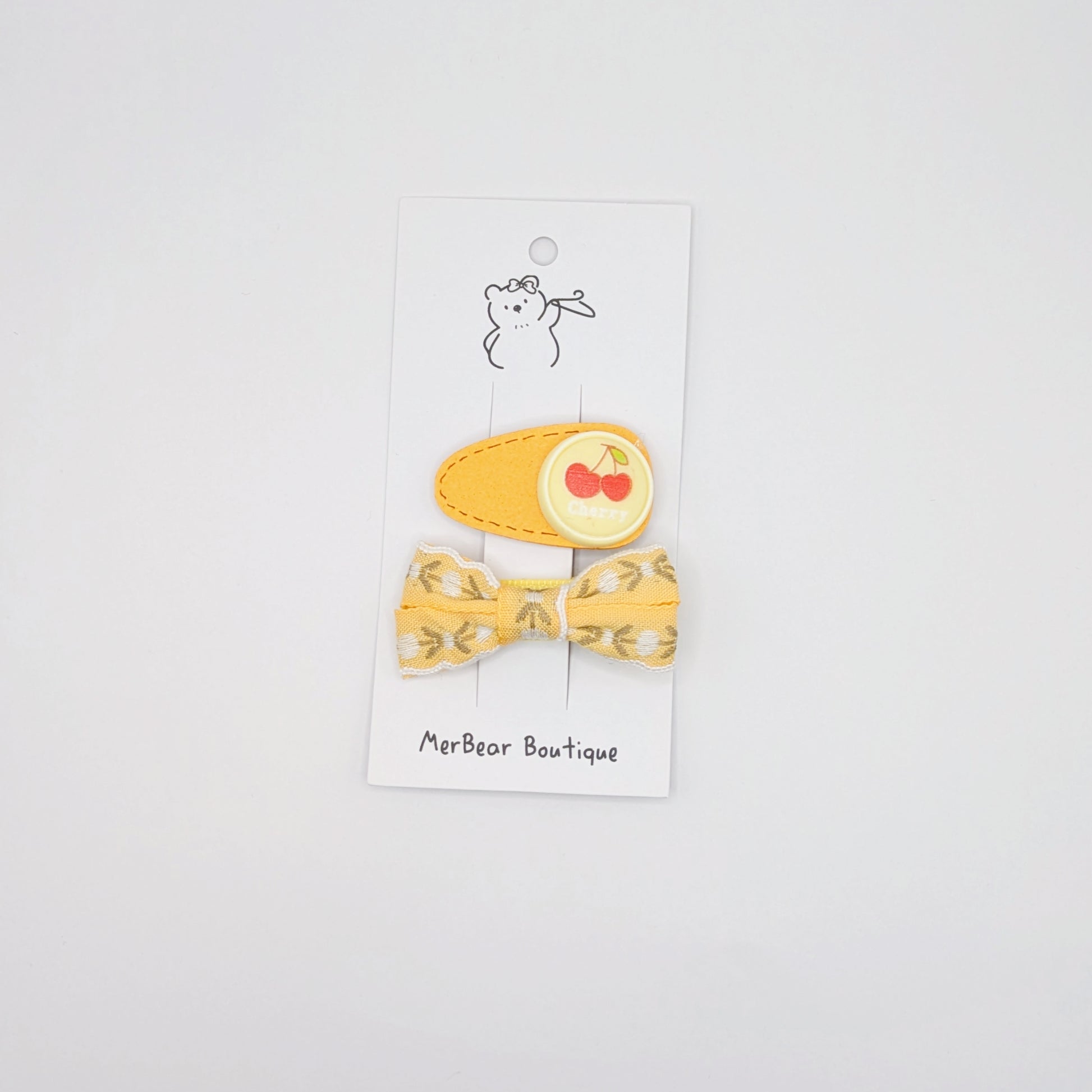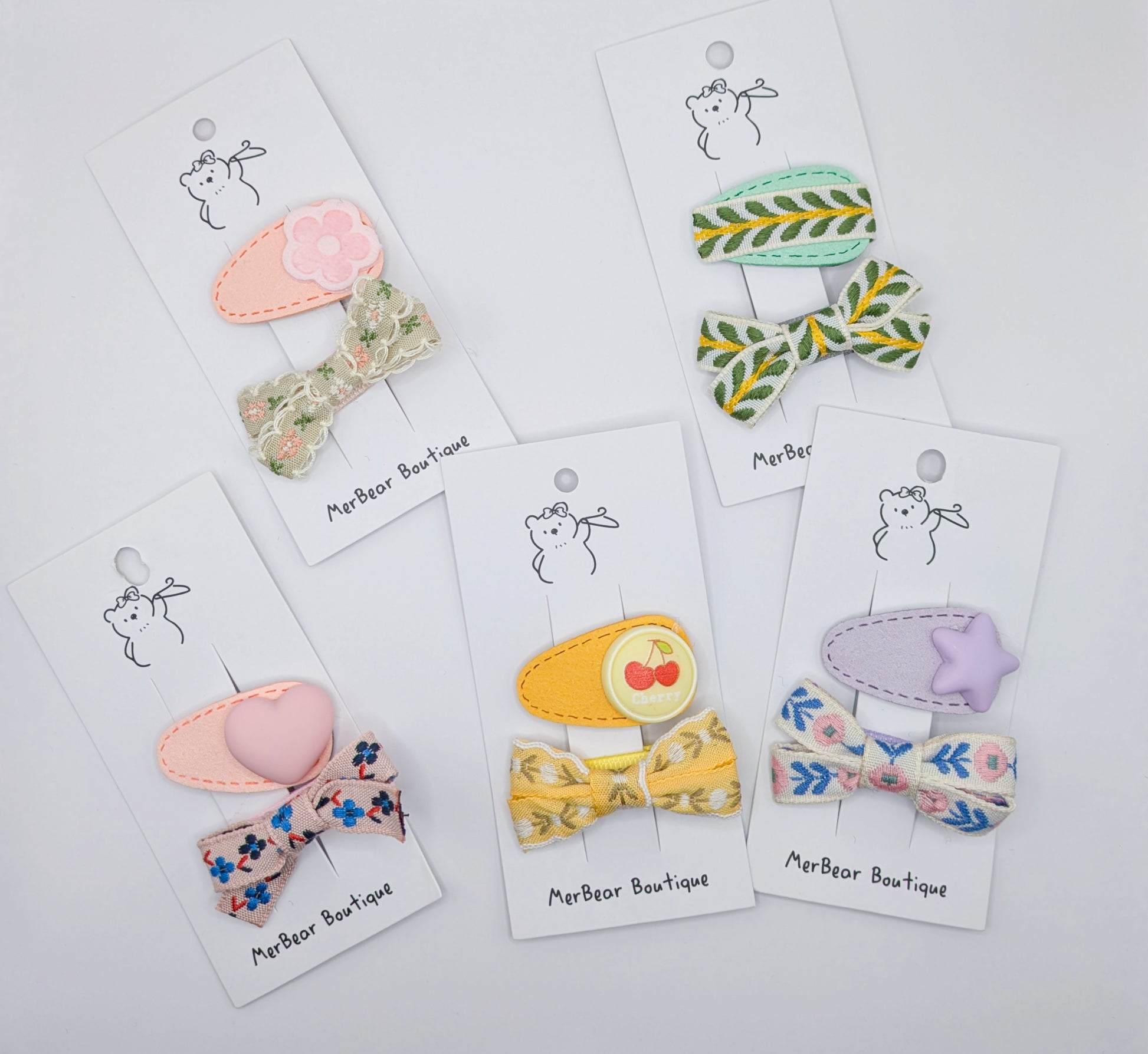 Brighten up every outfit with our Sweet Garden Hair Clip Sets! Each set includes a charming printed fabric bow and a matching soft snap clip, featuring cute designs like hearts, flowers, stars, and cherries. Perfectly sized for little ones, these clips stay securely in place while adding a fun pop of color and personality.
